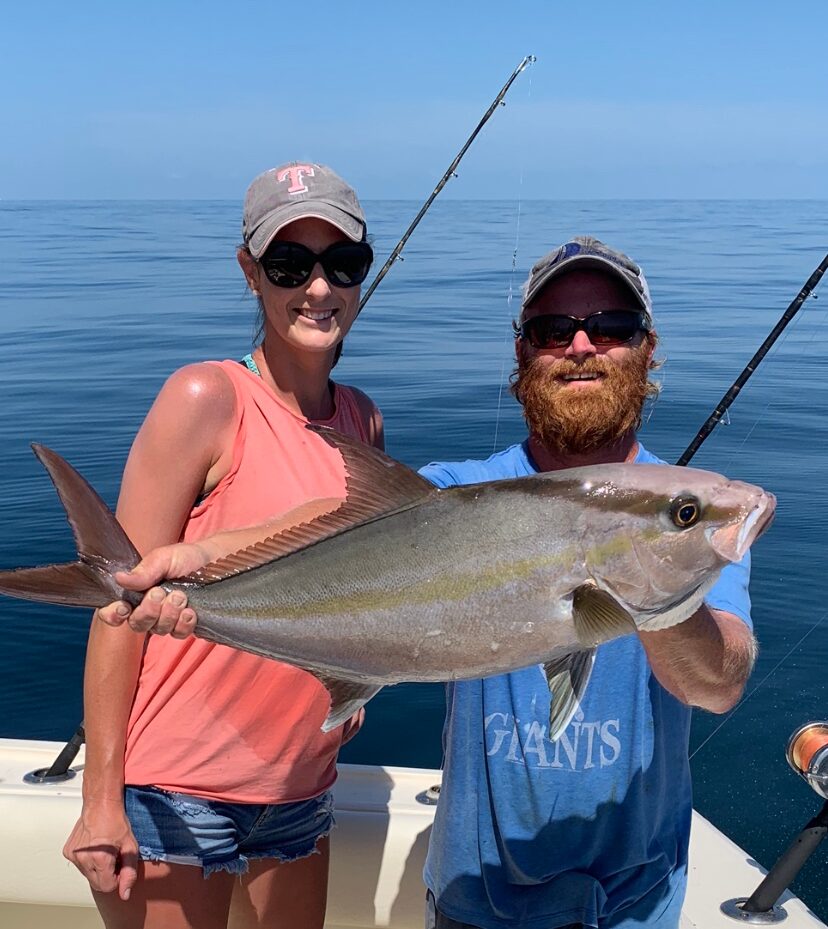 This amberjack is usually found in deep waters around 250 feet or deeper. This amberjack is known for it’s sickle fin. These are hard fighting fish and are also good to eat.