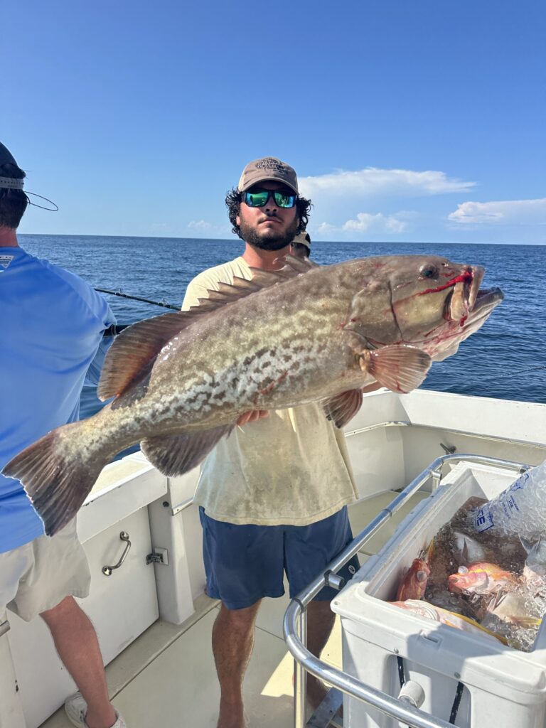 Gag grouper has always been a prize fish off of Alabama Gulf Coast waters. You will usually find these fish on hard bottom in depths of 140 to 240 feet. Live bait is the best option. Gag grouper can range from 10 pounds to around 60 pounds. A 20 to 40 pound gag grouper is considered a very nice one.