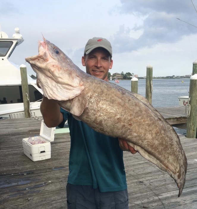 Not a common catch, but one we actively target on deep-drop trips in 600+ feet of water. Cusk are a true deep water delicacy with firm, white meat — hands down one of the best-tasting fish in the Gulf.