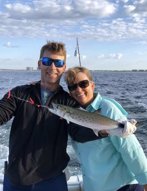 The Spanish mackerel are caught by trolling small artificial baits near the coastline. These fish range from 2 to 5 pounds. These are a very tasty fish. You will not get a battle from these fish unless you use light spinning tackle and cast into a school of mackerel. Catching Spanish mackerel are enjoyed by many families since small kids can reel these fish in by themselves with the rod in the rod holder.